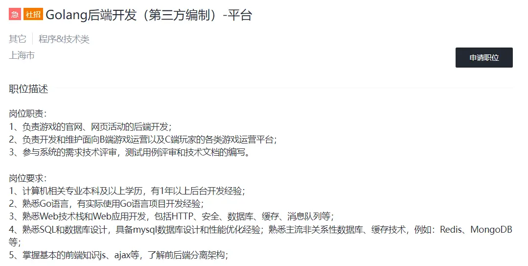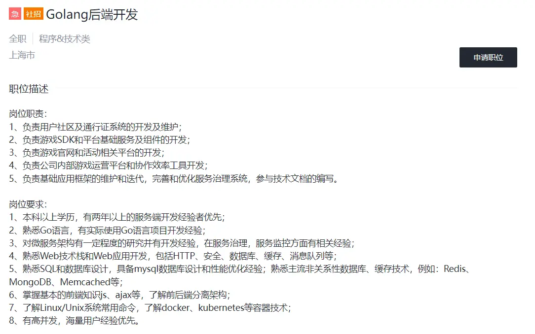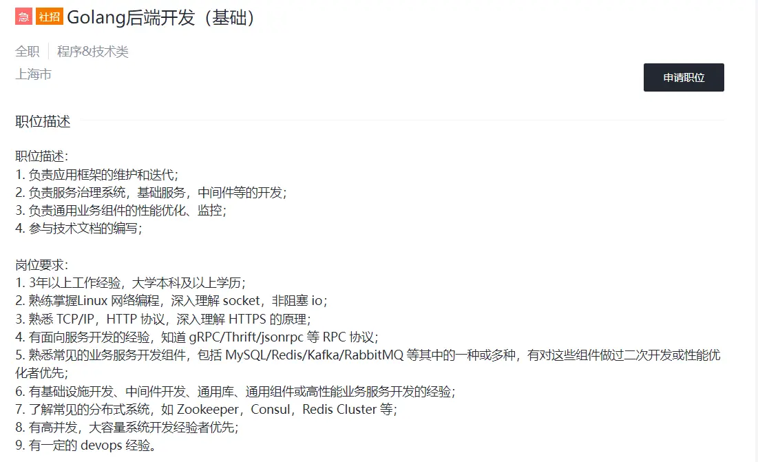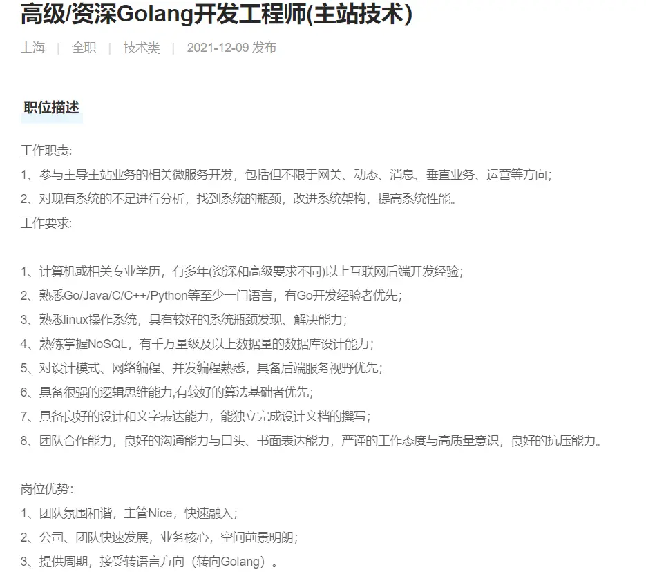 我想转go,用go语言编程,一直有点迷茫,go应该去学习什么,突然发现很有意义的东西,就是可以根据招聘要求去学习知识
